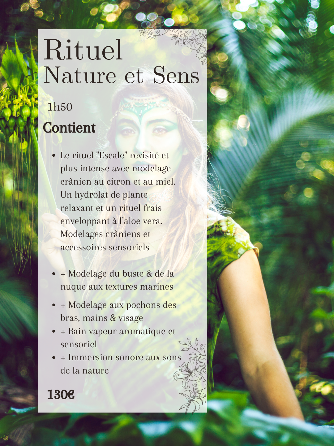 Le Rituel Nature & Sens est une immersion profonde au cœur de la terre, où textures végétales et marines se rencontrent pour offrir un voyage sensoriel enveloppant.